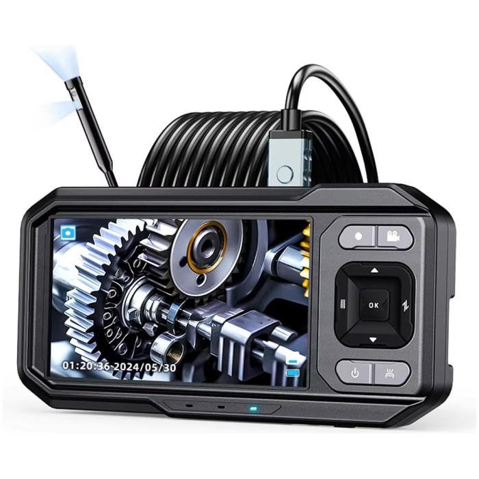 Tobo Dual Lens Industrial Endoscope, 1080P Digital Borescope Inspection Camera, 8.0mm IP67 Waterproof, with 4.3″ LCD Screen Display, 8 LED Lights,16.5FT Semi-Rigid Cable TD-