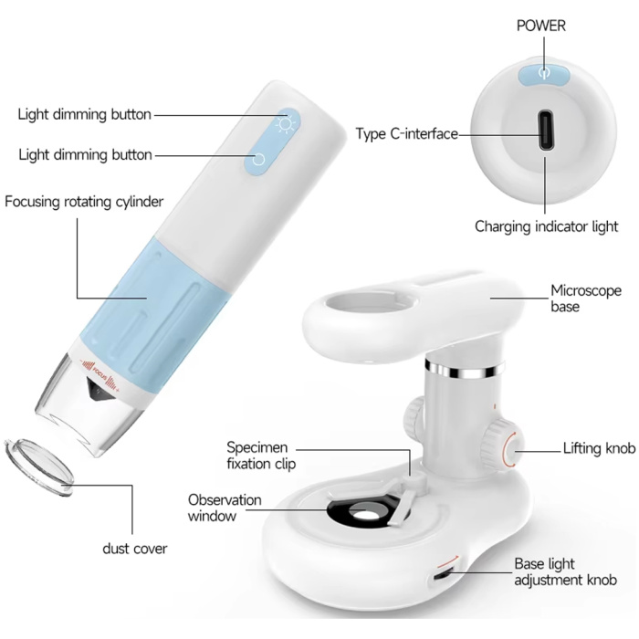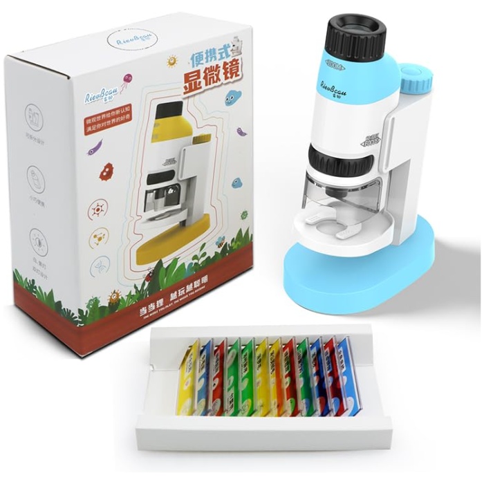 Tobo Kid’s Portable Pocket Microscope with Adjustable Zoom 60-120x, Handheld Scientific Experimental Equipment (Sky Blue and White)
