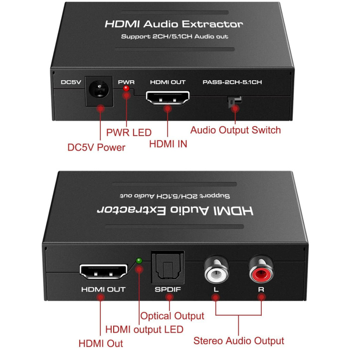Tobo HDMI To HDMI Audio Optical and RCA(L/R) Stereo Analog Outputs Video Audio Splitter Converter Support 4K 3D 1080P(50/60HZ) for Blu-ray Player Xbox PS4,with optical cable – TD-578H