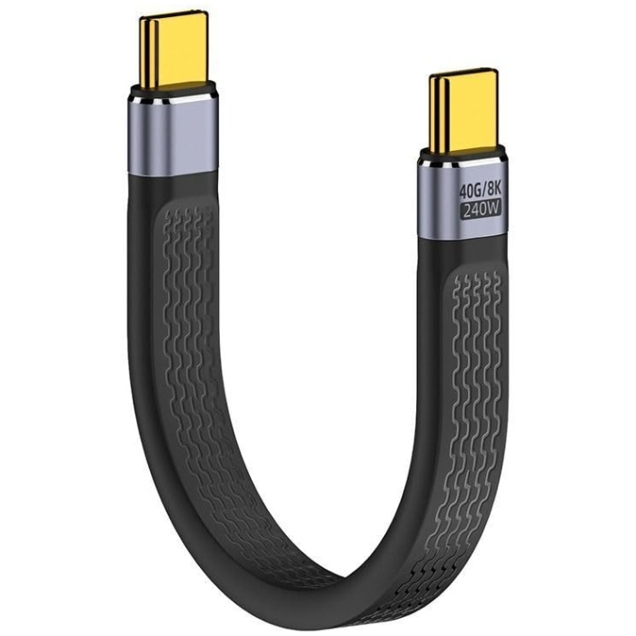 Tobo 8K Flat Slim FPC Data Cable 240W Type-C USB-C Male to Male USB4 40Gbps 100W Cord for Laptop Phone 13cm.