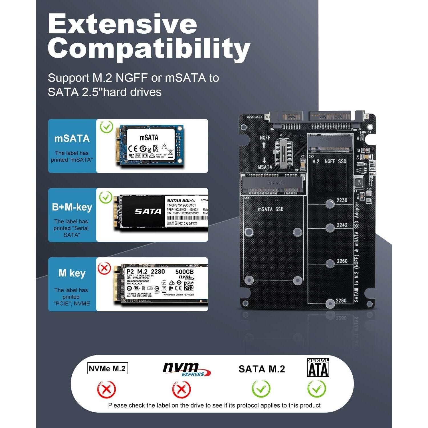Tobo 2 in 1 Combo NGFF M.2 SATA & mSATA SSD to 2.5inch SATA3.0 Adapter Converter Card,M.2 (NVMe & AHCI) SSD Can not be Supported (TD-423HS)