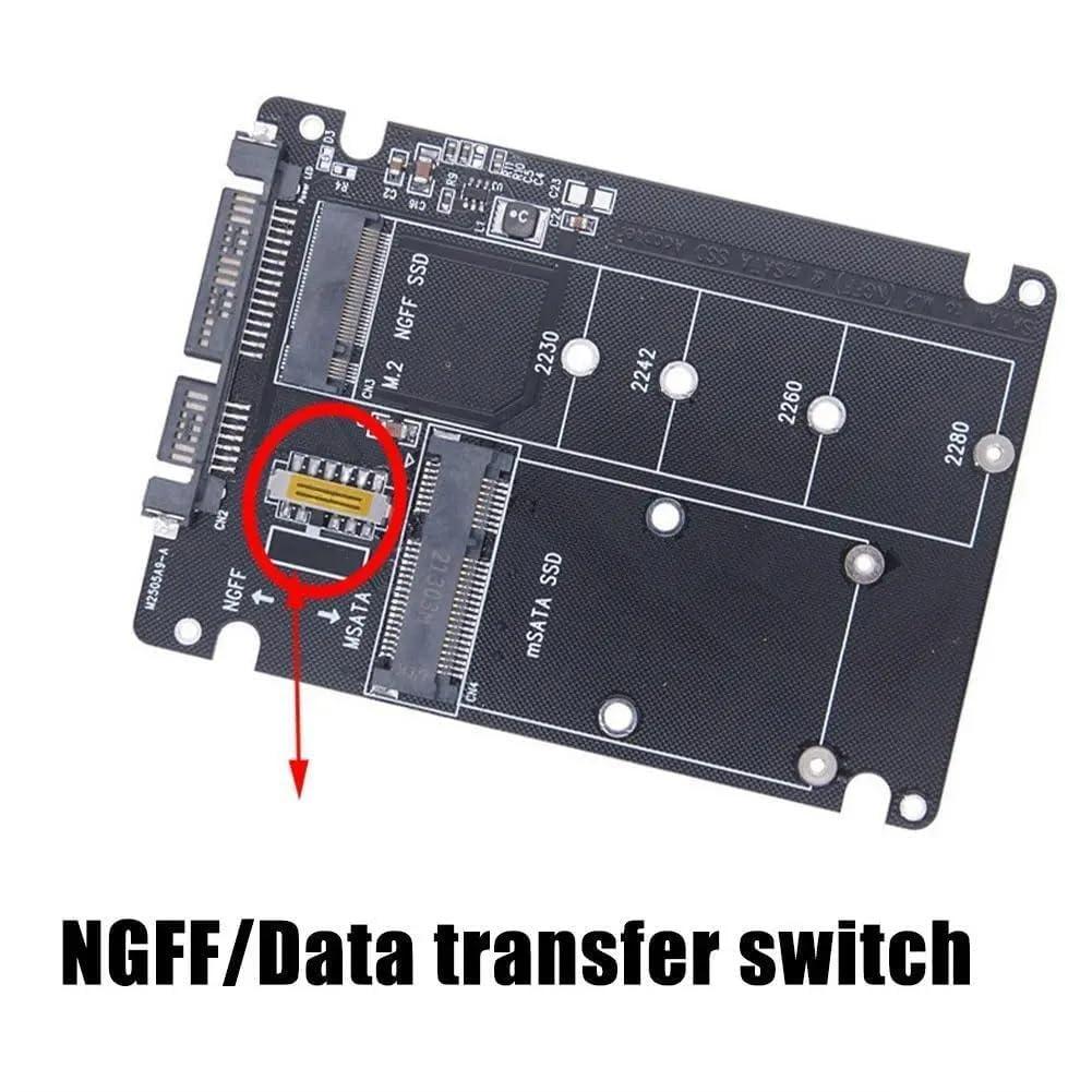 - ā¤Note–Two hard drives cannot be used at the same time! Turn the switch to NGFF to read the M.2 NGFF SSD, and turn the switch to mSATA to read the mSATA SSD. The adapter card only converts the interface form and does not change any performance.