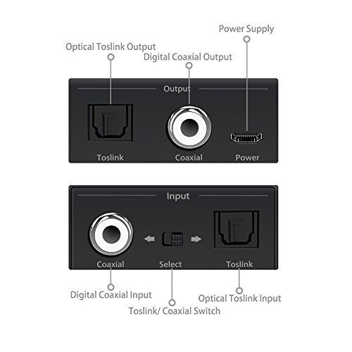 Switch to select either OPTICAL TOSLINK or COAX input and convert the signal as is) to both its COAXIAL and OPTICAL TOSLINK output ports