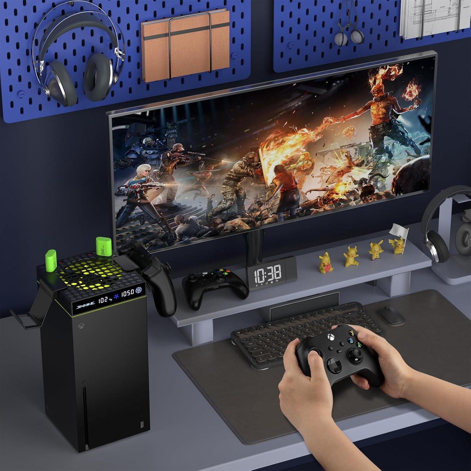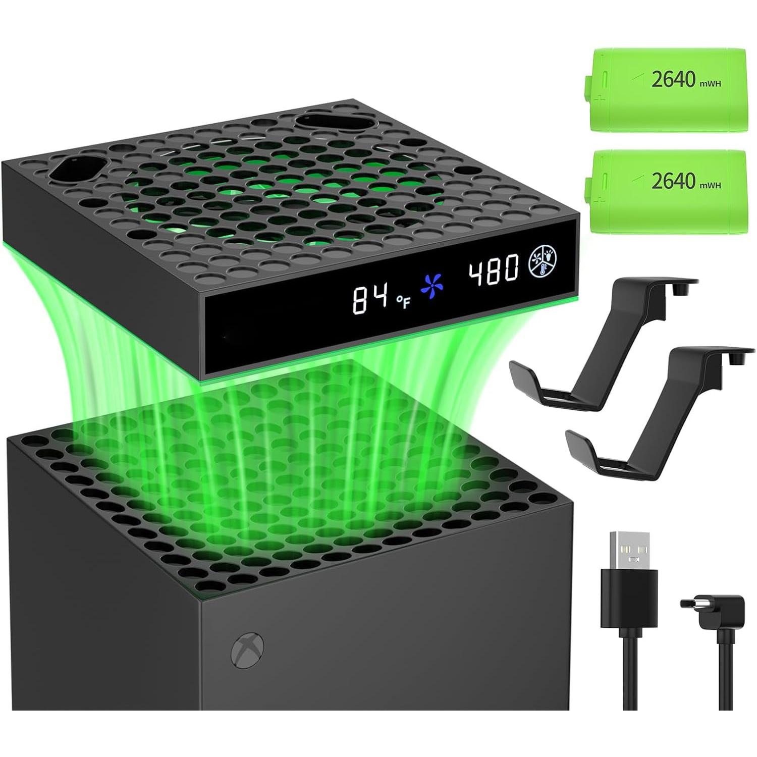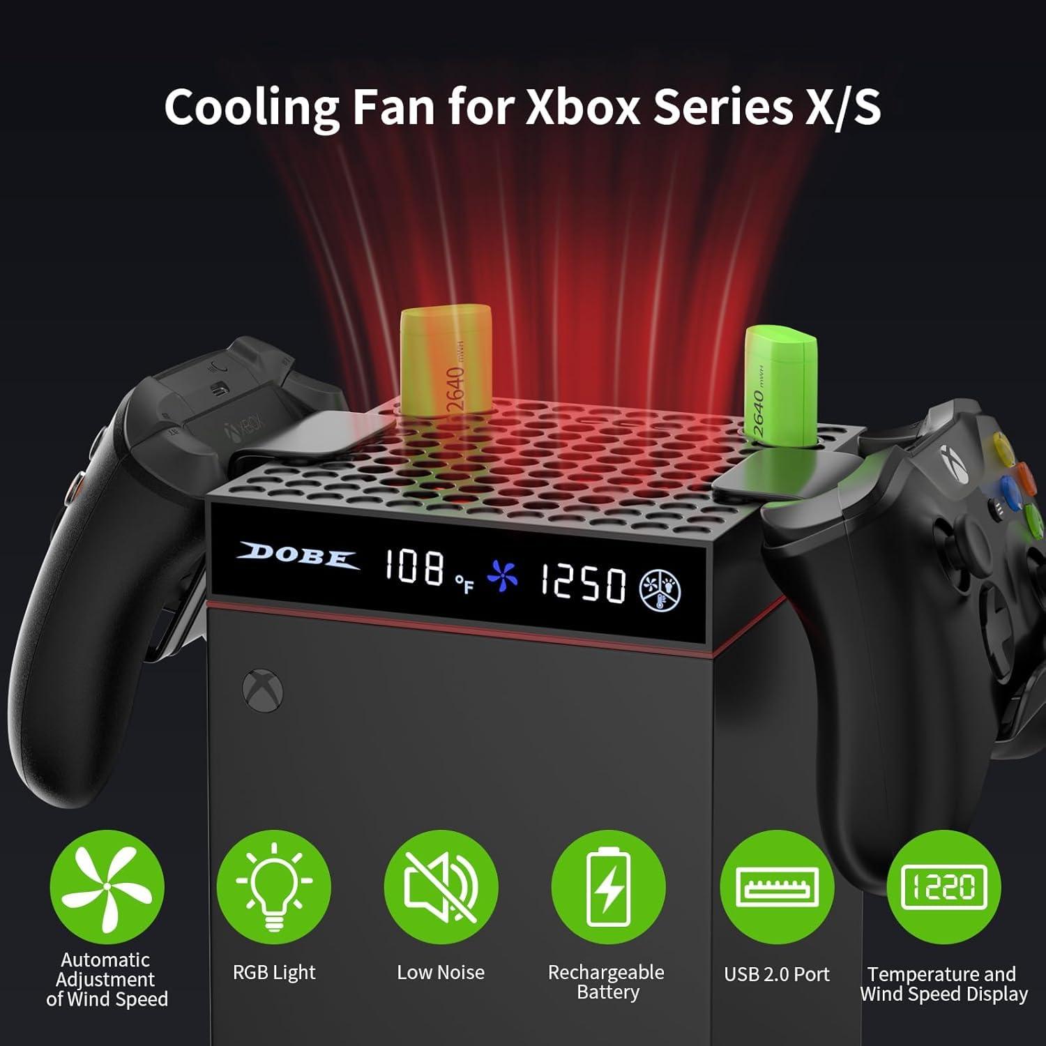 - šćLow Noise and LightweightćDesigned for convenience and comfort, Xbox Series X Cooling Fan operates quietly, ensuring minimal disturbance during your gaming sessions. The lightweight construction and easy installation make it a hassle-free accessory for your Xbox Series X console. Simply place the cooling fan on top of the console and connect the cable for immediate cooling performance.