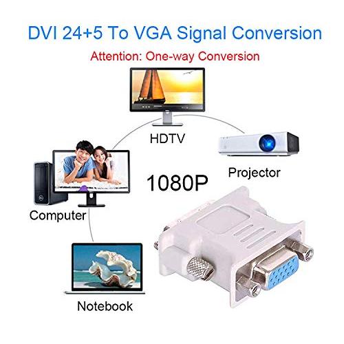 Wide Compatibility: This adapter compatible with all DVI-I 24+5 equipped laptops, desktops, video cards; and compatible with all VGA equipped Flat Panel Displays, Digital CRT Displays, monitors, TVs, projectors and displays.