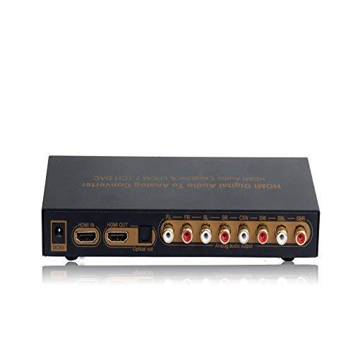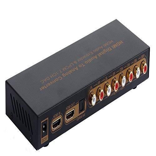 Decodes uncompressed HDMI LPCM 7.1 or 5.1 into multi-channel analog surround sound for amp, receiver or powered speakers.
