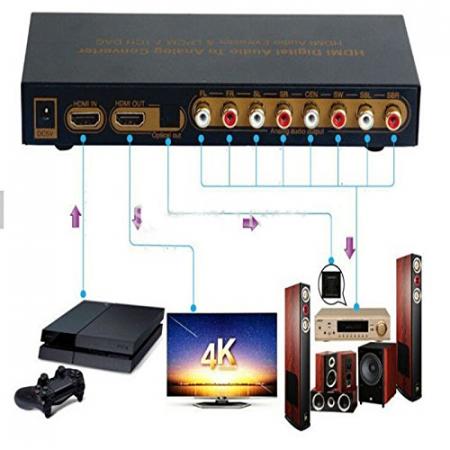 This professional HDMI audio decoder can decode the digital LPCM 7.1, 5.1 or 2-channel stereo PCM audio embedded in HDMI into analog surround sound, stereo or digital S/PDIF format so users can make the most use of their existing analog surround sound setup for their HDMI devices.