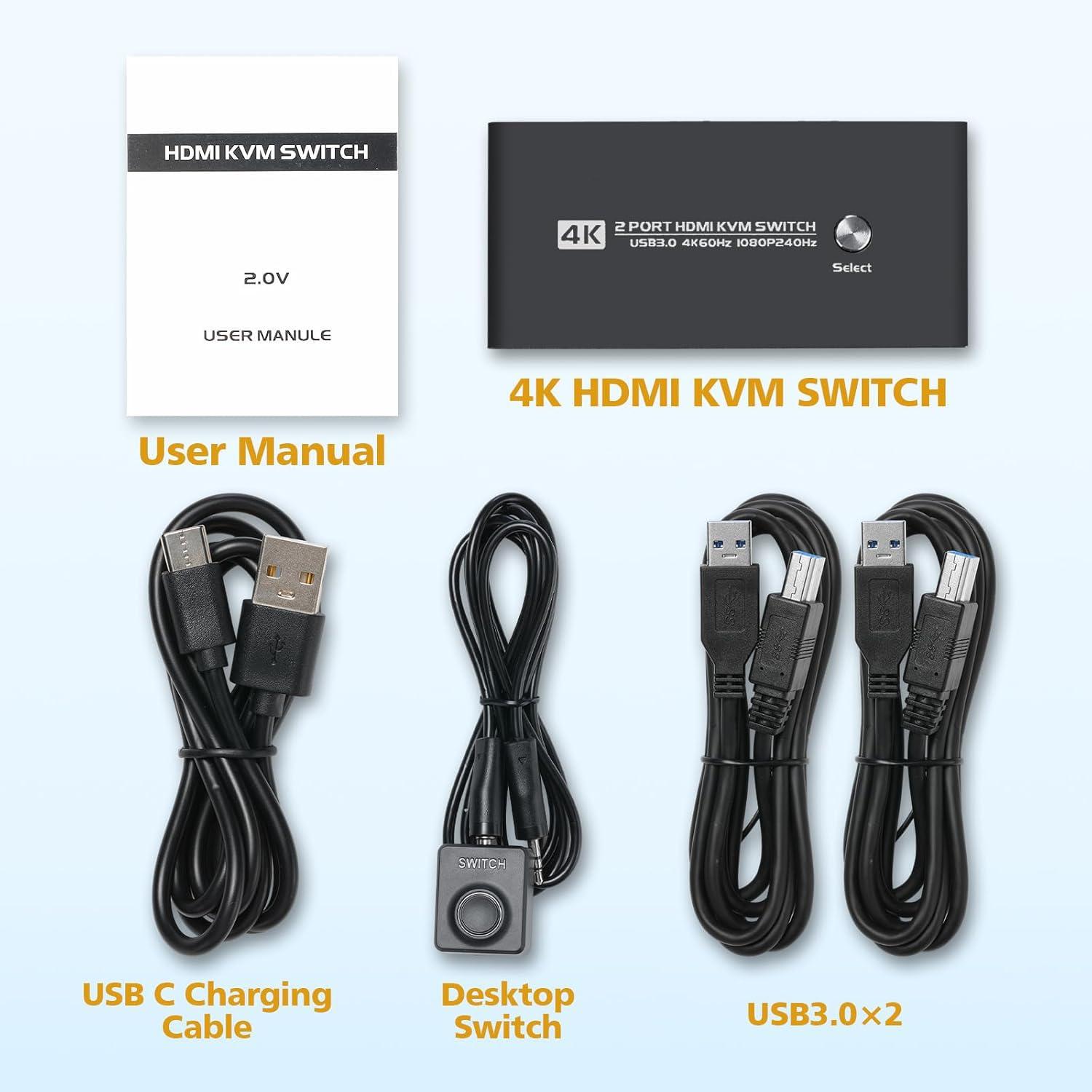 - KVM switches feature four USB 3.0 ports, allowing you to connect mice, keyboards, and other USB devices, providing ample connectivity options without worrying about insufficient ports. This HDMI KVM switch is equipped with an EDID emulator. When you connect a laptop to a larger display via KVM, it can intelligently retain your originally set resolution, window position, and size during switching, eliminating the need for frequent adjustments and greatly enhancing your workflow smoothness and efficiency. Our 2 port KVM switch boasts 4K 60Hz high-resolution display, delivering smooth and vibrant visuals that will immerse you in your professional work or entertainment. Equipped with EQ enhancement functionality, this KVM switch effectively handles signal attenuation and distortion, ensuring clear and stable signals even at a transmission distance of up to 100 feet (50-foot input and 50-foot output).
