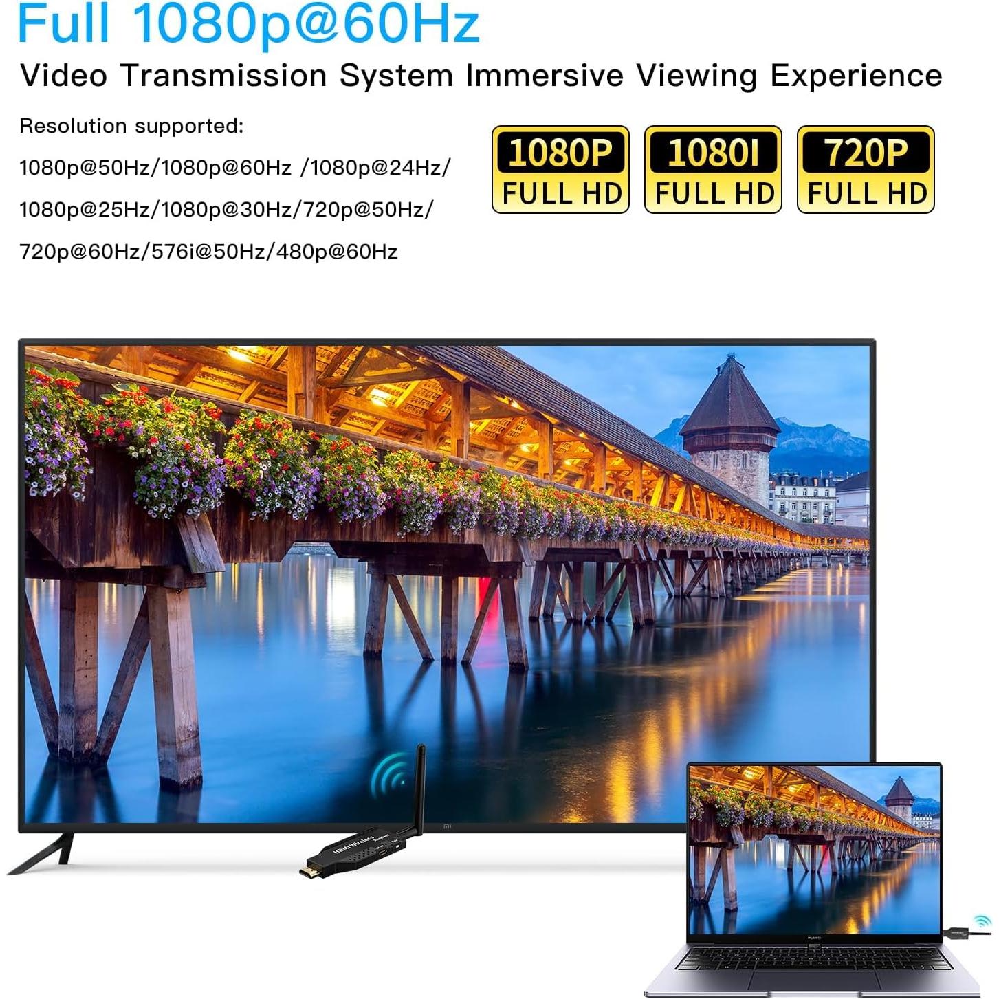 - [1080P HD video Zero-latency Transmission]-This device supports video resolutions up to 1080p@60Hz and below. with its advanced 2.4/5GHz technology ensures uninterrupted video feeding, while anti-interference features and a built-in chip prevent delays and lags, providing a smooth viewing experience.